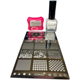 La plaque KONAD, grâce à ses dessins pré-découpés, permet d'appliquer des motifs originaux directement sur vos ongles en quelques secondes.